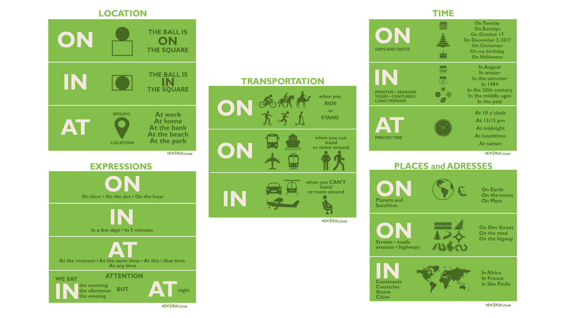 A melhor estratégia para fixar a informação é executá-la por partes.Então escolha um dos temas: LOCATION, TIME, EXPRESSIONS ou PLACES
