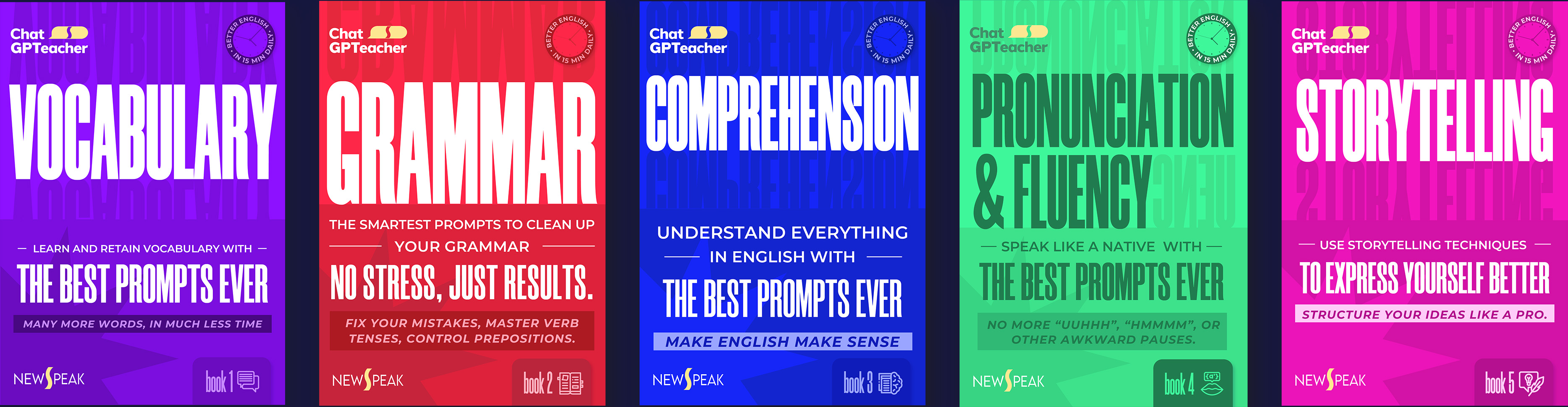 You’ll get a complete library of AI-powered prompts — carefully designed to help you practice all six core English skills: